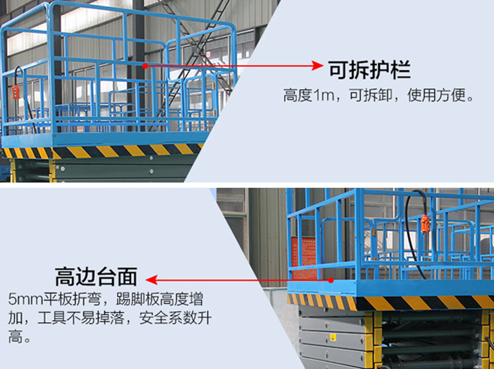 四:安全性高,采用上下雙控安全低壓操作按鈕,配備一鍵式緊急停止及意外失去電源的應急下降裝置,提高了設備的安全性。
